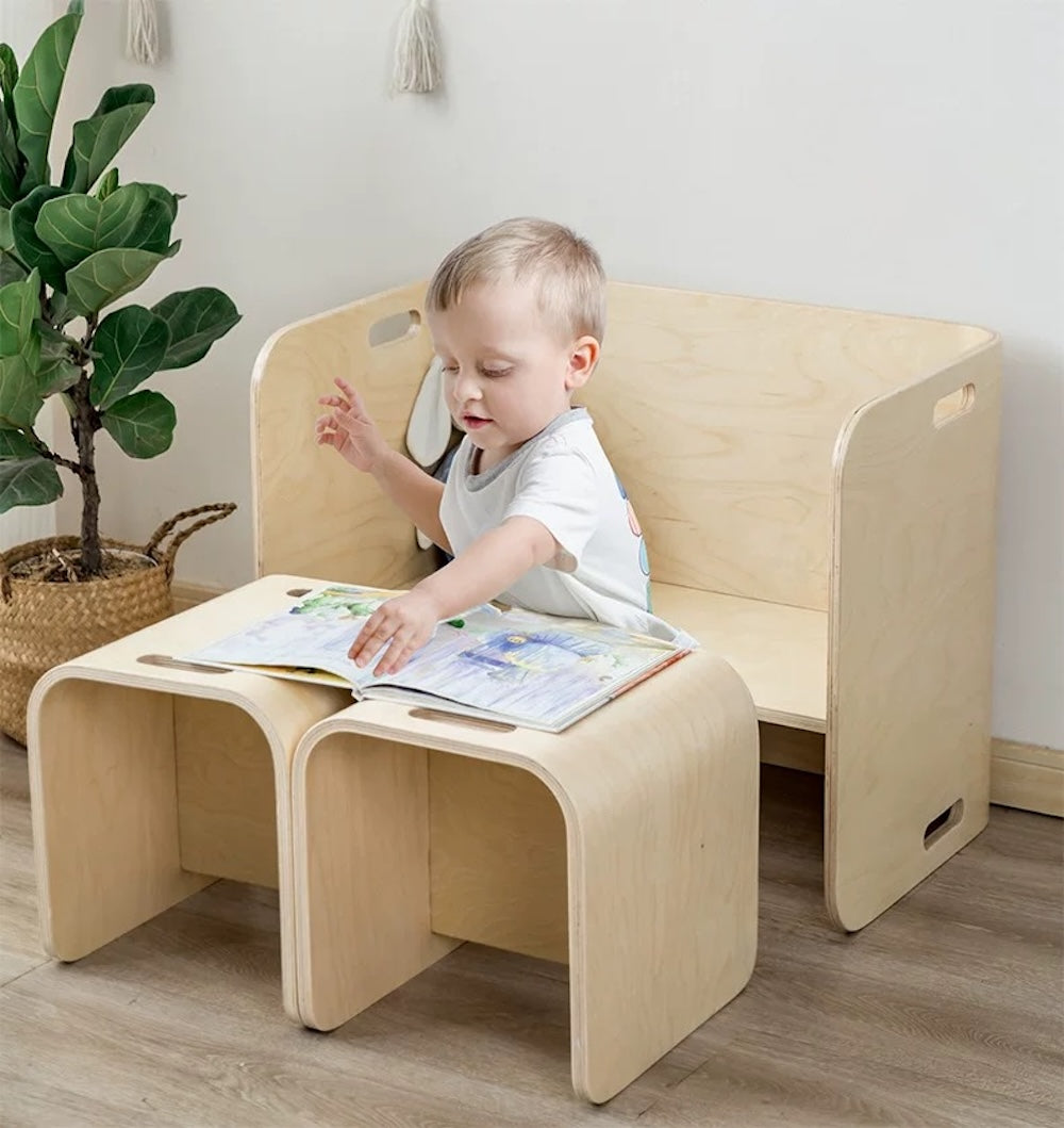 Montessori Bearhug 3-in-1 Montessori Wooden Desk & Chair Set for Kids - Convertible Learning Table, Play Station, and Dining Desk (pre-sale 5-8 weeks)